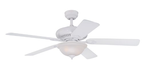 Today Sale Westinghouse Lighting 7842700 Fairview Two-Light 52-Inch Reversible Five-Blade Indoor Ceiling Fan, White with Frosted Glass Bowl from Amazon