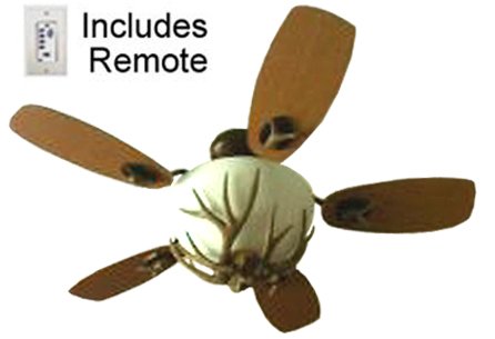 - According product rating in major online retailers, one of good products to buy is MesaVista, Remote Control, Rustic Ceiling Fan with Light. Oil Rubbed Bronze. 180 Watts of Light, Antler Light, Blades 1 Side Blade Is Pine, 1 Side Is Oak. Fan Can Be Set up As 3-blade, 4-blade or 5-blade, All Parts Included. Remote Operates 3 Speeds, Reverse, and Light On/off and Dimming.