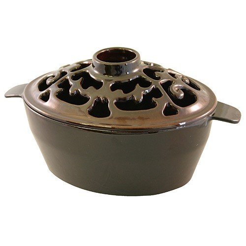 The Small Filigree Steamer steamer is great for smaller wood stoves. It's made made of cast iron with a durable porcelain finish inside and out to resist rusting. Add a few drops of one of our delicious smelling Stove Scents to the water and fill the room with a pleasant scent while adding moisture to the air. Stove Scents sold separately. This steamer has a brown majolica finish and will hold 2 Quarts of water. Measures 10 1/4" Long x 5 1/2" Wide x 5 1/2" High.